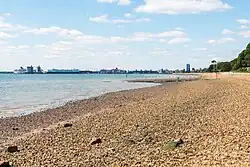 Weston borders Southampton Water at a shingle beach where some 1930s beach shelters can still be seen. These have been repainted white. This is Southampton's only remaining shoreline and is a good place to observe Southampton's double high-tide.