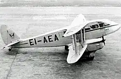 Weston Aerodrome was founded in 1931 (licensed circa 1937) by Darby Kennedy (1915-2016) who,[3] from 1946, operated a de Havilland Dragon and several Dragon Rapide aircraft commercially from the Weston flying field, operated under the name Weston Ltd. The charter flights took the biplane airliners to airfields in the United Kingdom. The commercial flight operation ceased in the late 1950s,[4] and Weston Ltd continued as a training provider for private and commercial licences. Darby Kennedy was chief instructor and also became chief pilot of Aer Lingus, Ireland's flag-carrier airline.