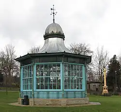 In 1895 the South West gates were erected on Western Bank close to the newly constructed Mappin Art Gallery. This became the park's main entrance and was built primarily so affluent visitors could drive their carriages right up to the gallery's door. The bandstand was added around 1900. It was designed by the Sheffield architects Flockton and Gibbs and constructed at a foundry in Glasgow. It was one of a pair, the other being placed in Hillsborough Park, but this has since been demolished. The bandstand was in use until the mid-1970s and many well-known bands have played there, including the Black Dyke Band and the Coldstream Guards Band; it has also staged several rock concerts there. The restored bandstand is now an approved Civil Wedding venue.[5]