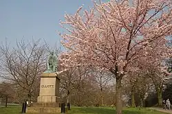 Robert Marnock was commissioned to design the park in 1873. New terra cotta pillared entrances were established at Winter Street and Western Bank using designs by Godfrey Sykes. The original lake from Weston Hall was extended and redesigned and the Ebenezer Elliott memorial statue was moved to the park from its original place in Market Place. A memorial to Godfrey Sykes was also erected in 1875 during the construction of the park, consisting of an 8-metre-high (26 ft) terra cotta column designed by James Gamble, one of Sykes's pupils. It depicts youth, maturity and old age.[2]