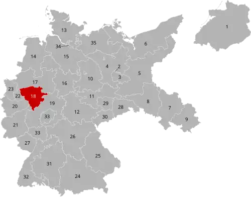 It comprised the Regierungsbezirke Arnsberg, the southern part of the province of Westphalia, within the Free State of Prussia. It was constituency 18 in the numbering scheme.[1]