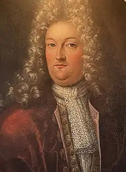 Colonel John Browne (1638–1711), built the first Westport House on the site of the O'Malley castle of Cahernamart.[1] He married Maud Bourke, daughter of Theobald Bourke, 3rd Viscount Mayo and the great-great-granddaughter of Grace O'Malley.[1] He was a Roman Catholic who fought on the Jacobite side in the War of the Two Kings. At that time, the house did not have the lake or a dam and the tide rose and fell against the walls.