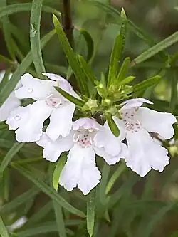 Westringia longifolia, commonly known as long-leaved westringia,[2] is a flowering plant in the family Lamiaceae and is endemic to southeastern Australia. It is a small shrub, with linear leaves and mostly white flowers.