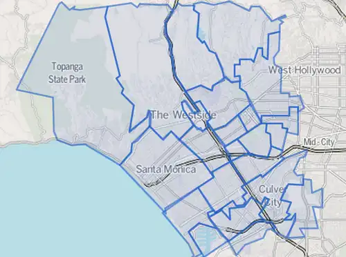 According to the Mapping L.A. survey of the Los Angeles Times the Westside includes all of the below neighborhoods that are part of the city of Los Angeles: