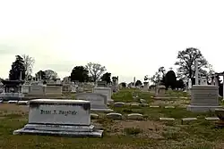 Atlanta mayor Isaac N. Ragsdale's headstone at left - Amos G. Rhodes, of Rhodes Furniture, the Rhodes-Haverty Building and Rhodes Hall[33]