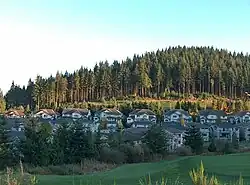 Westwood Plateau, with Burke Mountain behind and Golden Ears Provincial Park in the distance | |
