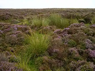 Wet Withens is a Bronze Age henge on Eyam Moor in the Derbyshire Peak District, England. The prehistoric circle of 10 upright stones (orthostats) is a protected Scheduled Monument.[1]