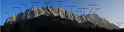 ![]() The Wetterstein and Mieming Chain (left) from the northeast | |