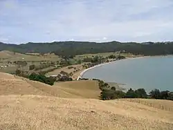 One of the earliest European settlers in the area was William Thomas Fairburn, who set up a Christian mission at Maraetai in the mid 1830s, however most European settlement of the area between Maraetai and the Wairoa River began in the 1850s.[2] In 1854, the New Zealand government created a 6,063 acre native reserve for Ngāi Tai, including the Whakakaiwhara Peninsula. As a part of this arrangement, Ngāi Tai agreed not to settle elsewhere in the region, which meant that Ngāi Tai's tradition of settling in areas seasonally could not be continued.[2] During the Invasion of the Waikato in the 1860s, rangatira Hori Te Whētuki kept a neutral position between the colonial government and the Kīngitanga Movement, however due to the shared Tainui connection between Ngāi Tai and the Kīngitanga Movement, many Ngāi Tai fought for the Kīngitanga.[2] In the aftermath of the invasion, much of Ngāi Tai's rohe was confiscated, however the Whakakaiwhara Peninsula remained in Ngāi Tai possession.