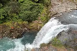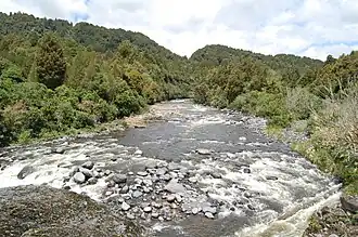 The river starts where the Whakapapaiti and Whakapapanui streams meet. They both run from Ruapehu and are joined by several other streams.[3] These include the Waikare and Tawhai streams that join the Whakapapaiti stream before its confluence to form the river.[17] The 13 m (43 ft) tall Tawhai Falls are on the Whakapapanui stream, rather than the Tawhai stream and are accessible by a walking track from the Bruce Road.[18] The upper stream catchment has had several lahars run down them in the last 10,000 years, including 1969 and 1975.[19] There was a major sector collapse without eruption of Ruapehu about 9500 years ago that impacted on the upper catchment.[17]