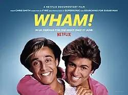 Wham! is a 2023 British documentary film about the English pop duo Wham! consisting of George Michael and Andrew Ridgeley. The film marks the 40th anniversary of their 1983 debut album Fantastic. Directed by Chris Smith it relies primarily on rare archive footage and audio interviews by the duo, including television appearances, concert footage, private home video, behind-the-scenes outtakes, and family comments all linked together using scrapbooks created by Ridgeley's mother.[4] The film was co-produced by Ventureland / Passion Pictures, Nemperor Production, and Library Films with Altitude Film and Netflix serving as distributors.[1][2][5]
