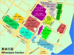 Whampoa Garden (Chinese: 黃埔花園; Jyutping: wong4 bou3 faa1 jyun4) is the largest private housing estate in Hung Hom, Kowloon, Hong Kong. It was built on the site of the former Whampoa Dockyards by Hutchison Whampoa Property. The urban design of the estate incorporates concepts inspired by the Garden city movement[1] and was completed in 1991.