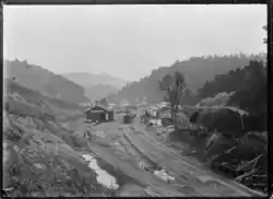 The first European settlers arrived in 1895, with the town proper established two years later.[5] Growth of the town was seriously affected by the deaths of 51 men (including some from the smaller nearby settlements of Kohuratahi and Tahora)[6] in the First World War and a major flood in 1924.[5] The town recovered with arrival of the railway line in 1933 and electrification in 1959, but its population declined in subsequent decades.[5] The school closed in 1979, followed nine years later by the post office.[5]