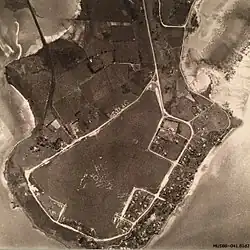 The first aerodrome in Whangārei was located on Pohe Island in the upper reaches of Whangārei Harbour. Sir Charles Kingsford Smith's aircraft, the Southern Cross, landed on Pohe Island in 1928.[2] This airstrip was not of high quality due to it being built on boggy reclaimed land, so a more suitable site was required. Another site was considered, at Kensington Park, but in May 1939 the current site was opened at Onerahi.[3]