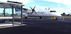 A project costing $1.5 million to create a 30m takeoff starter extension and reseal the runway was completed in April 2009. The upgrade allowed larger aircraft to land[16] and allowed Air New Zealand, through its subsidiary airline Air Nelson, to trial flights with its Bombardier Q300 aircraft. Daily flights from Auckland commenced in August 2013, growing in time to be the predominant aircraft used on the Auckland route before becoming the sole aircraft used in 2015.[14] In August 2011, the previously weight restricted ATR 72 aircraft made its first commercial service to Whangārei Airport on charter from Gisborne.
