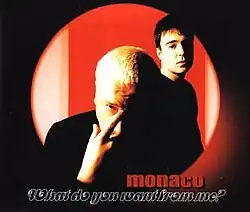 "What Do You Want from Me?" is the debut single by New Order bassist Peter Hook's band Monaco. The song is about Hook's failed relationship with comedian Caroline Aherne. Released in February 1997 from the band's debut album, Music for Pleasure (1997), the song peaked at number 11 on the UK Singles Chart and became a top-30 rock hit in both Canada and the United States. The band released two further singles from the album, but this remains the most successful. A music video was also shot for the song. The track was adopted by fans of Shelbourne F.C. in 2011.[1]