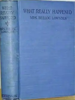 What Really Happened is a 1926 crime novel by the British author Marie Belloc Lowndes.[1] It was published in London by Hutchinson and in New York by Doubleday.[2] In 1936 she adapted the novel into a stage play of the same title.[3] Lowndes based the story on the Bravo Murder Case, shifting the setting from the 1870s to the present day.[4]