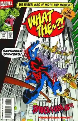 What The--?! is a Marvel Comics comic book series self-parodying the Marvel Universe as well as characters from the DC Comics Universe.[1] Similar in vein to the 1960s series Not Brand Echh, it was billed as "The Marvel mag of mirth and mayhem!" The series ran for 26 issues, from August 1988 through Winter 1993, with issue #26 being a Fall Special. It typically contained a series of short stories with comedic takes on Marvel heroes, and villains, such as having Spider-Ham substitute for Spider-Man.