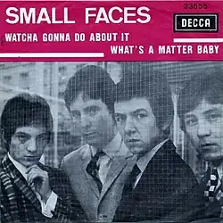 "Whatcha Gonna Do About It" is the debut single released by the English rock group Small Faces, released in the UK on 6 August 1965. The song peaked at number 14 in the UK Singles Chart, and stayed on chart for a total of 14 weeks.[1] It reached number 28 in Canada.[2]