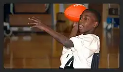 ![]() Boy playing on an American Wheelchair Football Team. | |