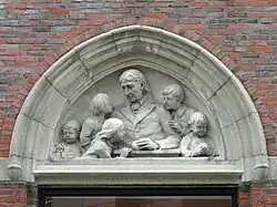 Founded in 1888 by Lucy Wheelock as the Miss Wheelock's Kindergarten Training School,[3] it offered undergraduate and graduate programs that focused on the Arts & Sciences, Education and Child Life, and Social Work and Family Studies to improve the lives of children and families. The college's academic programs merged with Boston University School of Education on June 1, 2018, and were incorporated as Boston University Wheelock College of Education & Human Development.[4] The physical campus of Wheelock College is now named the Boston University Fenway Campus, which includes a dining hall, student housing, and the Wheelock Family Theatre.[5][6]