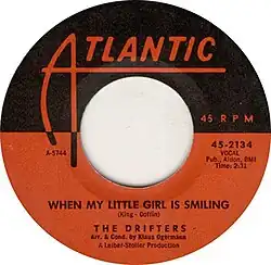 At the time of recording the song on October 26, 1961, the Drifters comprised Charlie Thomas (tenor), Rudy Lewis (tenor), Dock Green (baritone) and Tommy Evans (bass). On "When My Little Girl Is Smiling", Charlie Thomas sang lead.[1][2] The recording took place in Atlantic Studios, 157 W 57th Street, New York City, with guitarist Billy Davis and other session musicians, arranged by Klaus Ogermann, and produced by Jerry Leiber and Mike Stoller.[3] Released as a single by Atlantic Records in February 1962, it reached No.28 on the Billboard Hot 100.[2]