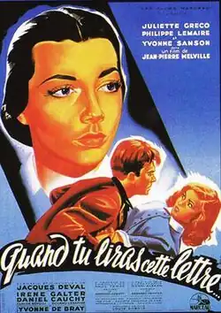 When You Read This Letter (French: Quand tu liras cette lettre) is a 1953 French-Italian drama film directed by Jean-Pierre Melville and starring Philippe Lemaire, Juliette Gréco and Yvonne Sanson.
