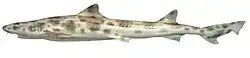 The whiskery shark (Furgaleus macki) is a species of houndshark in the family Triakidae, and the only member of its genus. This common shark inhabits the Australian continental shelf from Western Australia to the Bass Strait, to a depth of 220 m (720 ft). It is demersal in habits and prefers rocky and vegetated habitats. Stout-bodied and almost "humpbacked" in form, the whiskery shark can be distinguished from all other members of its family by the presence of long nasal barbels. Its two moderately large dorsal fins are roughly equal in size. It is brownish gray above and lighter below, with a pattern of darker saddles and blotches in younger sharks. This species reaches 1.6 m (5.2 ft) in length.
