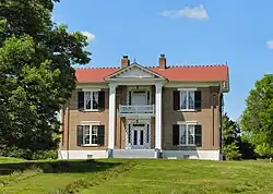 The house was built in about 1850 by Newton Whitaker, whose family had been among the earliest settlers of Mulberry.[1] It is a two-story brick structure built on an I-house plan. Its design is considered to be transitional between the Greek Revival and Italianate architectural styles, including elements characteristic of each of these styles.[2][3] A single-bay two-story portico with a bracketed pediment is a prominent feature of the house.[3]