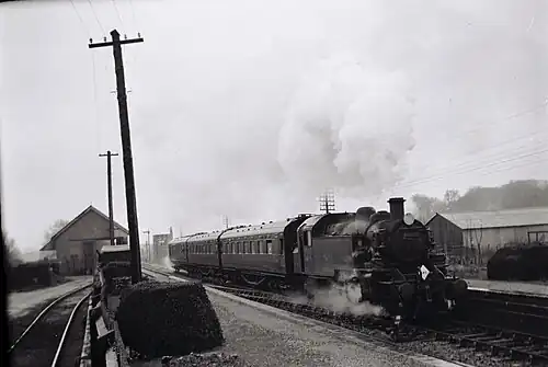 Like other stations on the former DN&S line, Whitchurch (Hants) station was closed temporarily on 4 August 1942 so that the line could be upgraded for wartime freight trains; it reopened on 8 March 1943.[1][9]