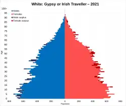 ![]() Population pyramid of White: Gypsy or Irish Travellers in 2021 | |