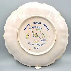 - ^ a b Visakay, Stephen (July 2006). "The Curious Story of the Most Famous Unknown Pottery Company in America: White Cloud Farms, Inc., Rock Tavern, New York". Journal of the American Art Pottery Association. 22 (4): 9–10.
