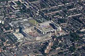 White Hart Lane was a football stadium in Tottenham, North London and the home of Tottenham Hotspur Football Club from 1899 to 2017. Its capacity varied over the years; when changed to all-seater it had a capacity of 36,284.[3] The stadium was fully demolished after the end of the 2016–17 season.[4]