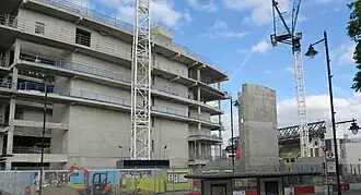 On 16 December 2015, the revised plans were approved by Haringey Council (planning reference HGY/2015/3000) that would enable Phase 2 of the NDP to begin, as Phase 1 (Lilywhite House) had already been completed in February 2015.[86] This therefore allowed widening of the High Road pavement leading to the new stadium by demolishing three buildings (Edmonton Dispensary, The Red House, and the former White Hart Public House). Construction work on the stadium began in early 2016.[87]