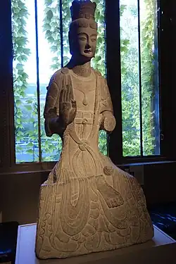 A stone statue of Maitreya, which was made in the 6th century, was stolen and lost to the United States, now it is preserved at the Museum of Fine Arts, Boston.[40]