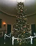 | 1979 | Douglas fir, West Virginia[109] | Corcoran School of Art created ornaments from balsa wood, fabric and dried flowers.[107] | Rosalynn Carter | Blue Room[110] | American folk art of the colonial period[107] | |