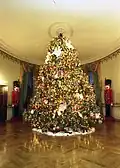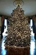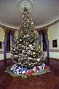 The White House Christmas Tree, also known as the Blue Room Christmas Tree, is the official indoor Christmas tree at the residence of the president of the United States, the White House. The first indoor Christmas tree was installed in the White House sometime in the 19th century (there are varying claims as to the exact year) and since 1961 the tree has had a themed motif at the discretion of the First Lady of the United States.