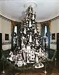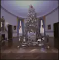 | 1954 | Silver tinsel, Eisenhower grandchildren opened presents under this tree.[126] | Mamie Eisenhower | East Room[126] | ||