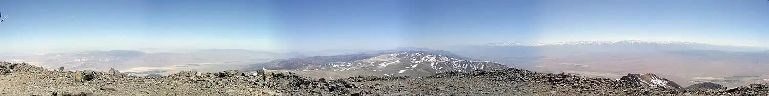 It is the fourteenth most topographically prominent peak in the contiguous United States.[4] White Mountain Peak is one of only two fourteeners (peaks above 14,000 feet) in California that are not in the Sierra Nevada, the other being Mount Shasta at the far northern end of the state in the Cascade Range. It is the only fourteener in the contiguous United States that is not in the Rocky Mountains, the Cascade Range, or the Sierra Nevada. It is in the Inyo-White Mountains.[5]