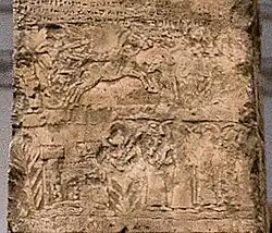 The White Obelisk is a large stone monolith found at the ancient Assyrian settlement of Nineveh, northern Iraq. Excavated by the British archaeologist Hormuzd Rassam in 1853, it is one of only two intact obelisks to survive from the Assyrian empire, the other being the Black Obelisk of Shalmaneser III. Both are now preserved in the British Museum.[1] The White Obelisk dates to the beginning of the Neo-Assyrian Empire and has been variously ascribed to the reigns of Ashurnasirpal I (c. 1040 BC),[2] Tiglath-Pileser II (c. 950 BC)[3] or Ashurnasirpal II (c. 870 BC).[2]