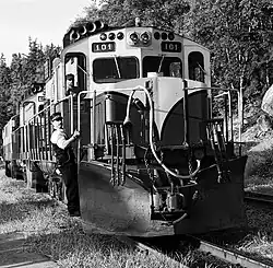 Units 101-107 were built in May 1969 while units 108-110 were built in December 1971.[4][5][6] They are powered by an American Locomotive Company (ALCO) model 6-251D prime mover.[3] In July 1982, the White Pass and Yukon Route (WP&Y) ordered an additional four units, those being units 111-114, built by the Bombardier Transportation, complete with a wide cab instead of the traditional standard cab at the time, but these units were ultimately never delivered to them and eventually placed in storage.[7]