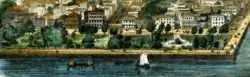 From about 1840 to 1881, a public bathing house stood at the end of King Street.[3] The building was constructed by James English, William Patton, and Henry L. Pinckney at a cost of about $25,000. A cake and ice cream parlor was operated on the top floor of the bathing house. The bathing house suffered several injuries by storms but was rebuilt each time. It was removed in 1881 as White Point Garden and the waterfront were filled in.[4]