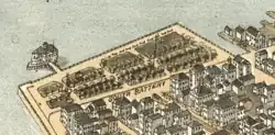 The southern tip of Charleston's peninsula was originally known as the South Bay[1] and later Oyster Point. In the early 19th century it was renamed White Point. Later, landfill projects resulted in the sharp-edged terminus of the peninsula.[2]