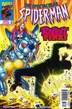 White Rabbit (Dr. Lorina Dodson) is a supervillain appearing in American comic books published by Marvel Comics. Created by J.M. DeMatteis, Kerry Gammill, and Mike Esposito, the character first appeared in Marvel Team-Up #131 (July 1983).[1] White Rabbit is a wealthy criminal who based her supervillain persona on Alice in Wonderland.[2][3] She is a recurring antagonist of the superhero Spider-Man.[4][5][6]