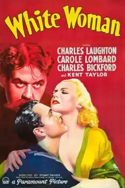 White Woman is a 1933 American pre-Code drama film directed by Stuart Walker and starring Carole Lombard, Charles Laughton, and Charles Bickford.[1] The screenplay concerns a young widow who remarries and accompanies her husband to his remote jungle rubber plantation. It is based on the 1933 Broadway play Hangman's Whip, written by Norman Reilly Raine and Frank Butler.