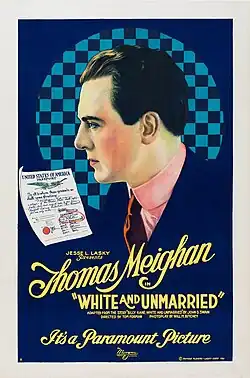 White and Unmarried is a lost[1] 1921 American comedy silent film directed by Tom Forman and written by Will M. Ritchey and John D. Swain. The film stars Thomas Meighan, Jacqueline Logan, Grace Darmond, Walter Long, Lloyd Whitlock, Frederick Vroom, and Marian Skinner. The film was released on May 29, 1921, by Paramount Pictures.[2][3]