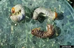 The use of semiochemicals, such as pheromones and kairomones, for pest management has been poorly developed, adding to the challenge of mitigating their impact.[4] Alternative strategies based on ethology, such as disrupting mating or host finding, are being explored as options for pest management.[15] Studies have also shown that adding manure to soil, which increases the availability of labile organic matter such as particulate organic matter (POM), can reduce larval damage to pasture plants. The presence of POM may serve as an alternative food source for scarab larvae, potentially decreasing their intensity of feeding on plant roots.[16]