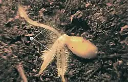 White worm beetle feeding on grain cereal roots