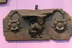The friary was established on 14 February 1342 with the help of Sir John Poultney,[2][3] about a century after the Carmelites arrived in England. It was built on land that had previously been fields and orchards. The Carmelites were a mendicant religious order, dependent on charity from those they taught and on the gifts from pilgrims visiting their shrine of Our Lady of the Tower. According to Dugdale, 'This Chapell is in the tower of the Cittye Wall without New Gate, close by the roadway leading towards London. On the outside thereof was a picture of the blessed Virgin, richly painted, and within an image and her altar, whereat most travellers which passed by did offer more or lesse, out of confidence that their journey would be better blest'.[4] In 1344, King Edward III gave land to extend these buildings and a similar grant followed in 1352.[5] Several local benefactors left donations in the form of bequests to the friary: in 1384 Lord Basset of Drayton left the Carmelites £300 to enlarge the church, in 1419 the monastery was considerable enlarged with a gift from William Botener, of Withibroke[6] and in 1506 Thomas Bonde of Coventry left them 20 marks to assist with the rebuilding of the cloisters. The coat of arms of the Ferrers family (Earls of Derby) was found during excavations of the church, suggesting that the family had also made bequests to the order.[5] Carmelite orders were dependent on such donations to build their friaries and the Coventry house was clearly developed through a process of gradual building and enlargement as and when funds became available.[5]
