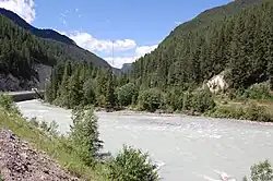 The Kicking Horse River is a small tributary of the Columbia River located in eastern British Columbia near the town of Golden. Due to its location along the Trans Canada Highway the area sees significant tourism including numerous day rafting outfitters. Only the section of the river below Wapta Falls is commercially run.[2]
